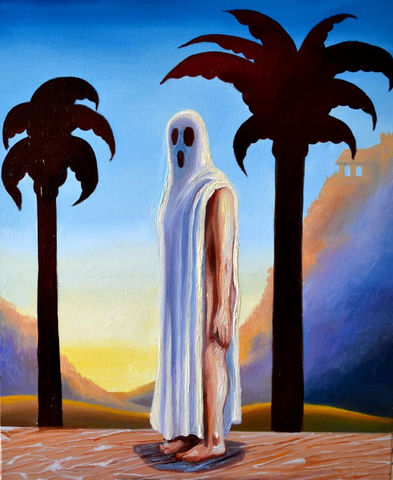 Bizarní dovolená je místo v mé imaginaci, kde je slunečno. Připomíná klidná středomořská letoviska, s dobrým jídlem a antickými památkami, tyčícími se v příjemně teplém vzduchu. Pravda, něco tu úplně nesedí. Proč se pod palmou koupe plameňák s hlavou dinosaura však nemá smysl řešit. Jsme přeci na prázdninách. Hoďme mu zbytek řízku a lehněme si zpátky na deku.