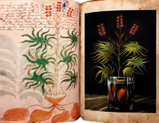In der Serie Voynich-Manuskript beschloss Klára, das rätselhafteste Buch der Welt näher zu betrachten - nicht durch den Text, sondern durch die Illustrationen. Ohne die Ambition, die Handschrift zu entschlüsseln, untersuchte sie deren Ausführung - die Pinselstriche, die Intensität der Farben, ob ihr Autor in Eile war oder Zeit zum Arbeiten hatte. Schließlich beschloss sie, die naiven, scheinbar dilettantischen Zeichnungen von Pflanzen in eine realistischere Form zu bringen.